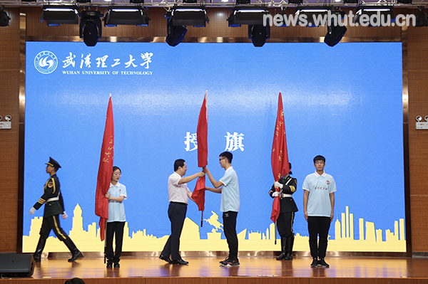 出征儀式上,孟芳兵副校長(zhǎng)分別向暑期社會(huì)實(shí)踐隊(duì)、“百崗行動(dòng)”專項(xiàng)實(shí)踐隊(duì)、“追尋習(xí)近平總書(shū)記青春奮斗足跡”專項(xiàng)實(shí)踐隊(duì)授旗。