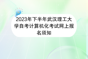 2023年下半年武漢理工大學(xué)自考計(jì)算機(jī)化考試網(wǎng)上報(bào)名須知已發(fā)布!計(jì)算機(jī)化考試分為計(jì)算機(jī)應(yīng)用基礎(chǔ)(實(shí)踐)(00019課程)考試和計(jì)算機(jī)應(yīng)用基礎(chǔ)(00018、00019課程合卷)考試,為確保報(bào)名工作順利進(jìn)行,現(xiàn)就有關(guān)事項(xiàng)告知如下,需要報(bào)考的同學(xué)快來(lái)一起看看吧!